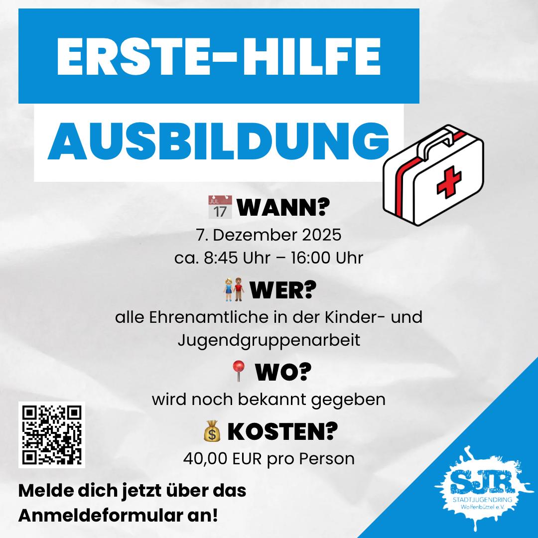 Der Stadtjugendring Wolfenbüttel lädt alle Jugendleiter:innen herzlich zu einer besonderen Erste-Hilfe-Ausbildung ein!