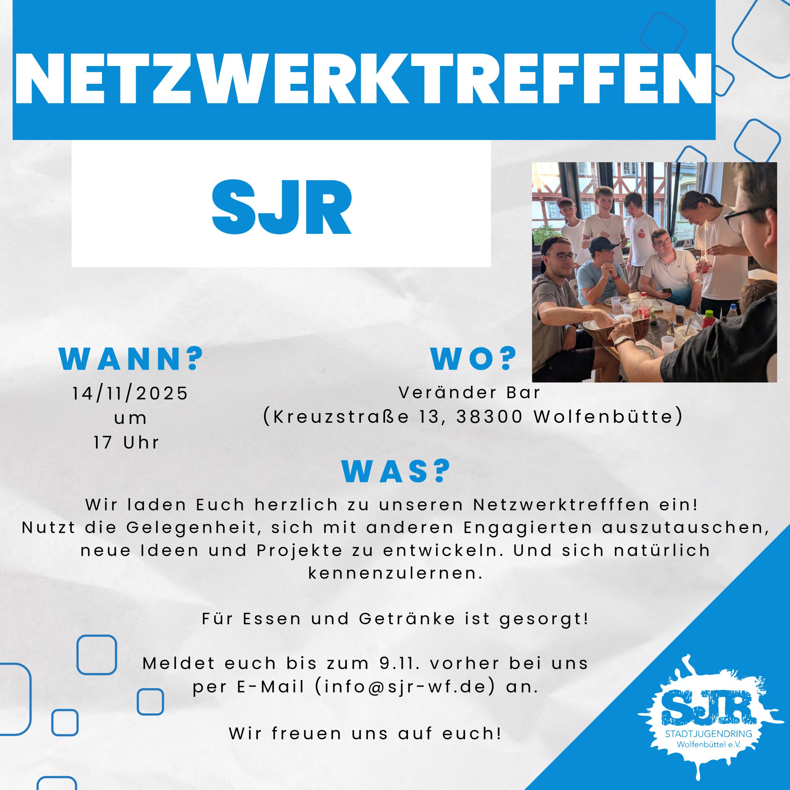 Der Stadtjugendring Wolfenbüttel lädt herzlich zum Netzwerktreffen ein! Diese Veranstaltung bietet eine einzigartige Gelegenheit, um mit anderen Ehrenamtlichen ins Gespräch zu kommen, Ideen auszutauschen und gemeinsame Erfahrungen zu teilen.